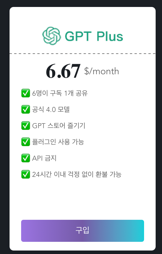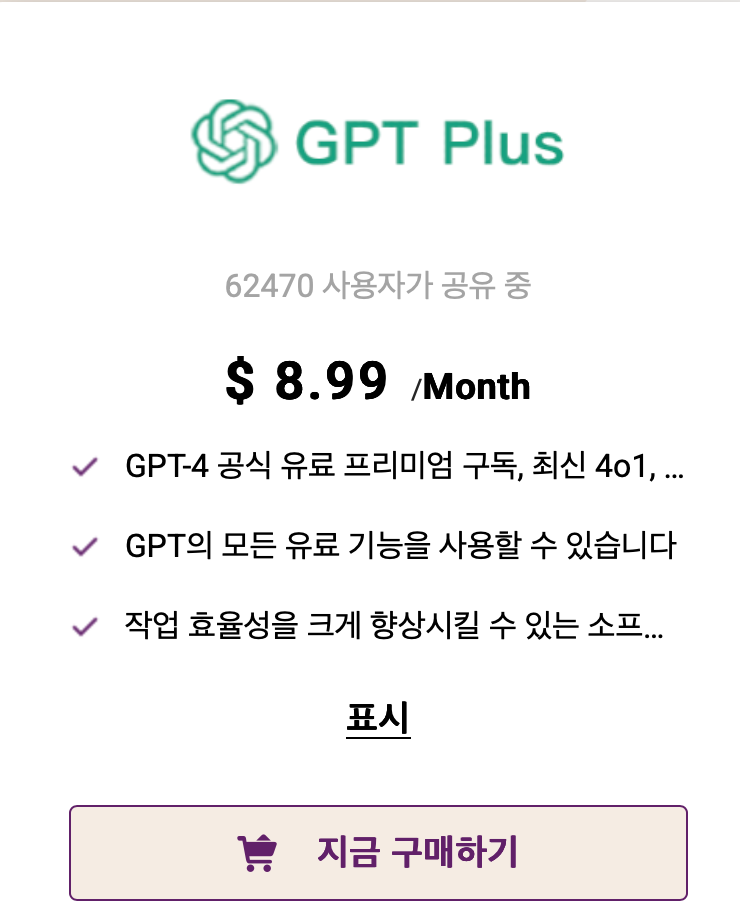 공유 계정을 통해 합리적인 비용으로 챗지피티의 AI 혜택을 누려보세요.