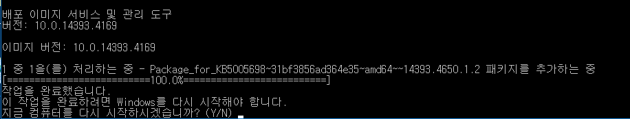 4-2. "DISM.exe /Online /Add-Package /PackagePath:파일명.cab" 패키지 설치를 강제로 진행.