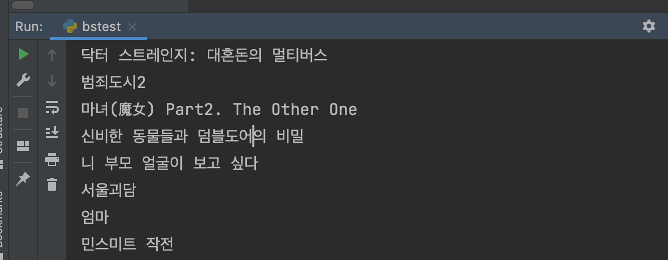 정상적으로 웹크롤링이 된 것을 확인 할 수 있습니다.