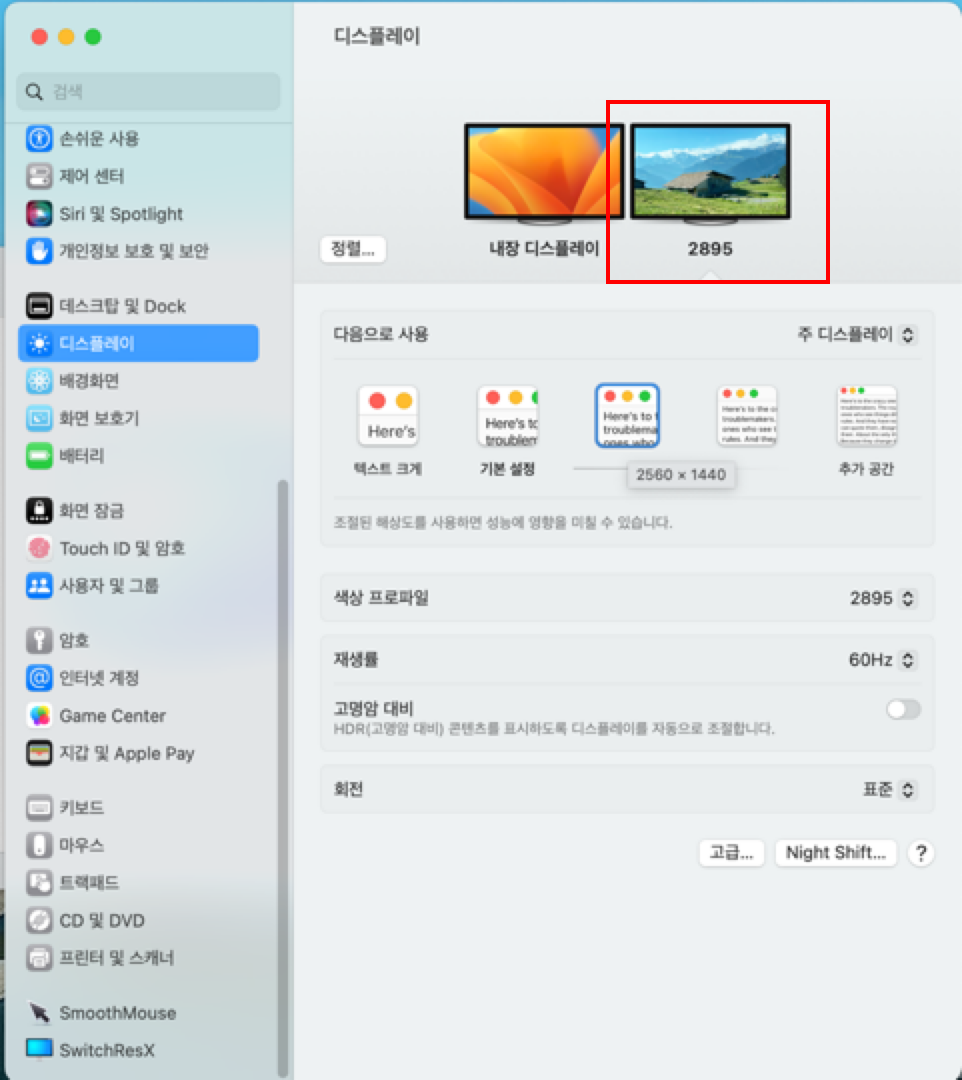 현재 사용중인 디스플레이 설정을 확인해보도록 하겠습니다.