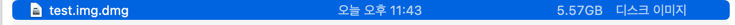 이미지 생성 완료시 아래 경로로 test.img.dmg 파일이 생성됩니다.