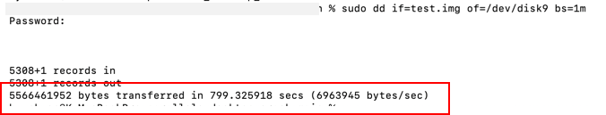 - sudo dd if= test.img of=dev/disk9 bs=1m