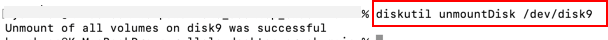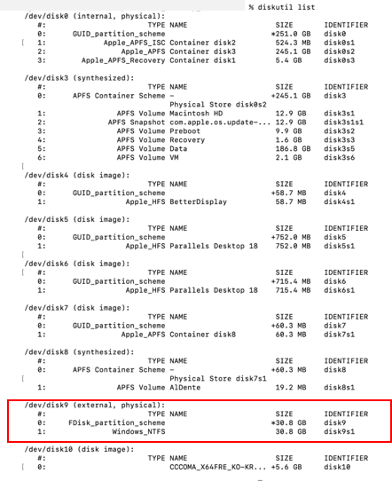 나의 경우 "dev/disk9" 가 내 USB의 디스크 정보이다.