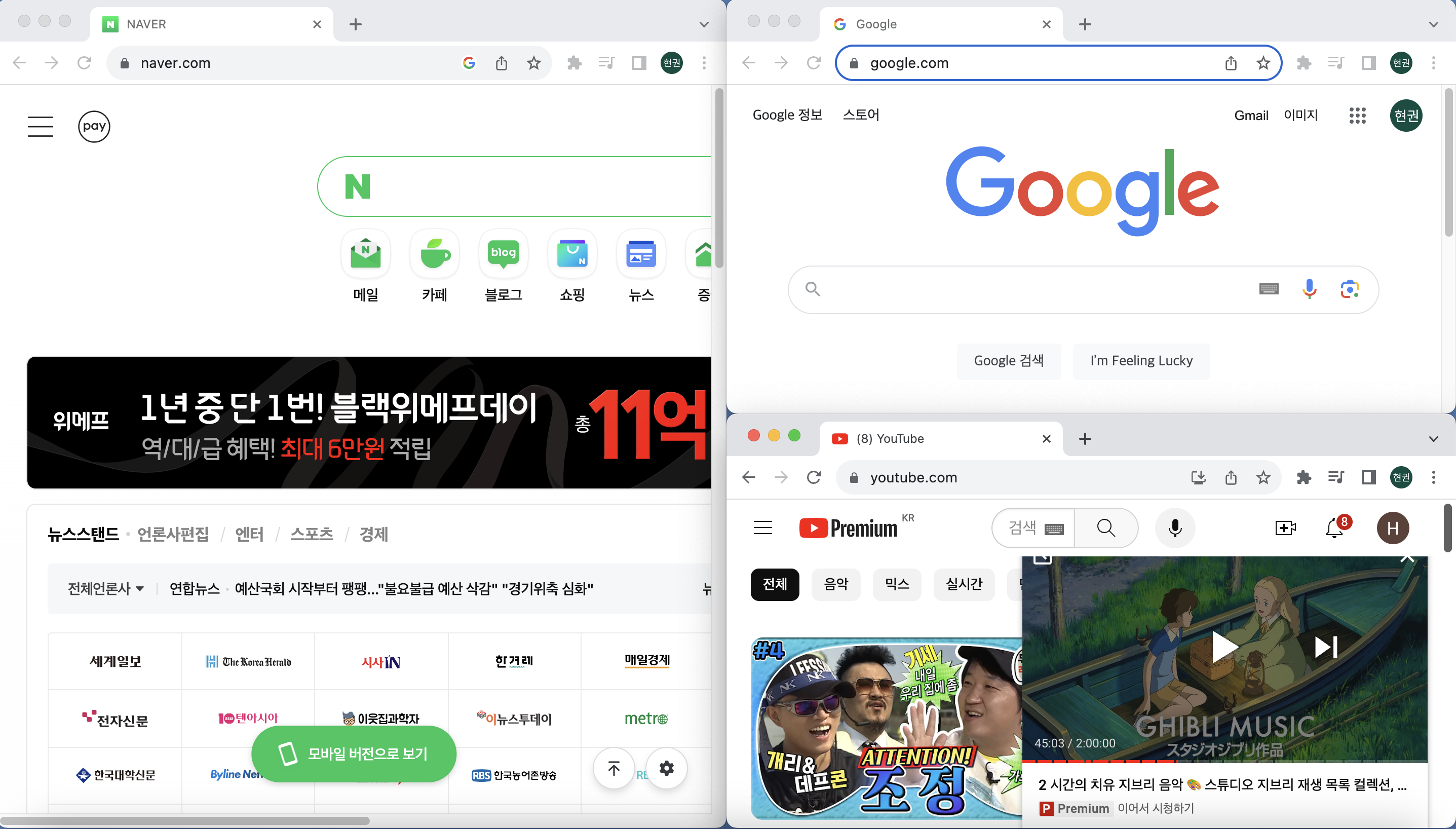 - 화면을 여러개로 쪼개서 사용 할 수 있다.