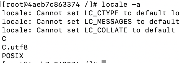 Failed to set locale, defaulting to C.UTF-8 오류 발생