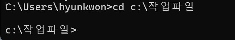 저는 py 파일이 c:\작업파일 에 위치해있으므로 c:\작업파일로 이동하였습니다.