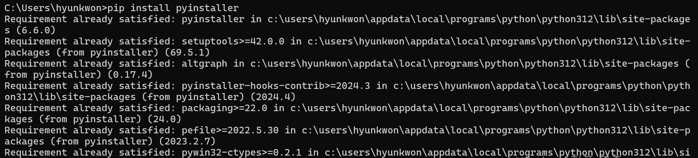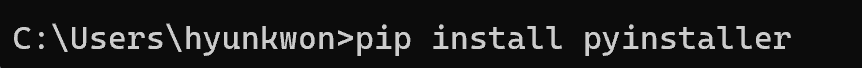 1. CMD 창에서 아래와 같이 pyinstaller 설치 명령어를 실행합니다.